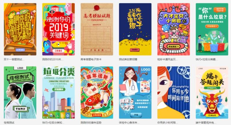 选择测试主题时,要抓住当下目标人群的普遍情绪点。比如我们微传单的这个《想过六一?测测你的童心指数》,画风十分现代,也是非常常见的测试形式。可以用于月底、年终、年半等特殊时间节点,人们在时间节点上总是会天然关注新的计划。