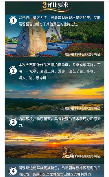 例如它要求照片只能在风景区拍摄,每条规则都配了摄影老师拍摄的作品。也就是说,你所看到的活动推广页面,都是琵岩山风景区。