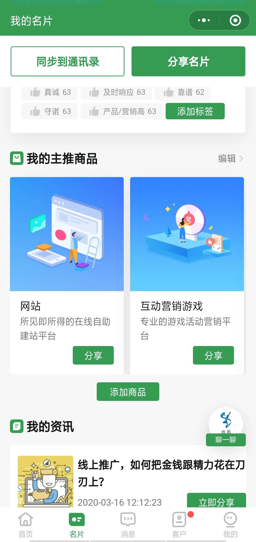 的商品信息,可以通过智能名片进行