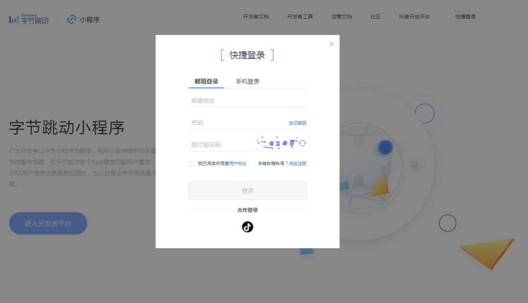 1. 企业可登录字节跳动小程序官网,进入【开发者平台-申请】按要求填写相关信息,完成注册流程。