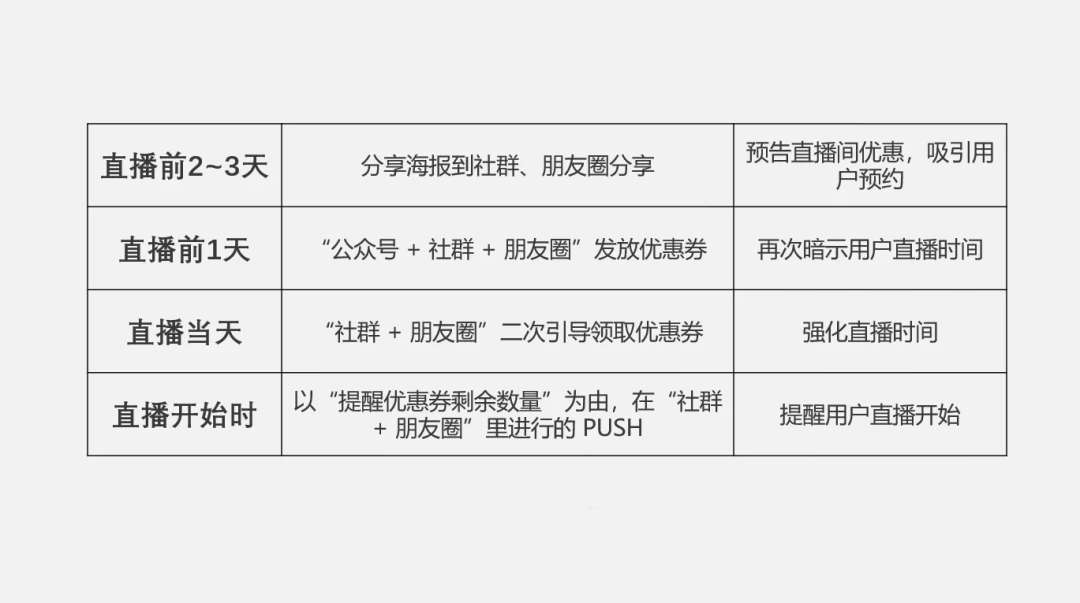 当然,如果想让预热效果更好,还可以按照时间顺序多层次持续增强用户对直播活动的印象。