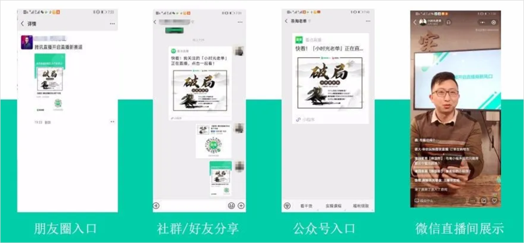 但在微信生态内,我们可以进行多维度的直播预热。最常见的打法就是“社群 + 朋友圈 + 公众号”的组合。宣传的物料可以是文案链接、海报二维码,也可以直接分享小程序。