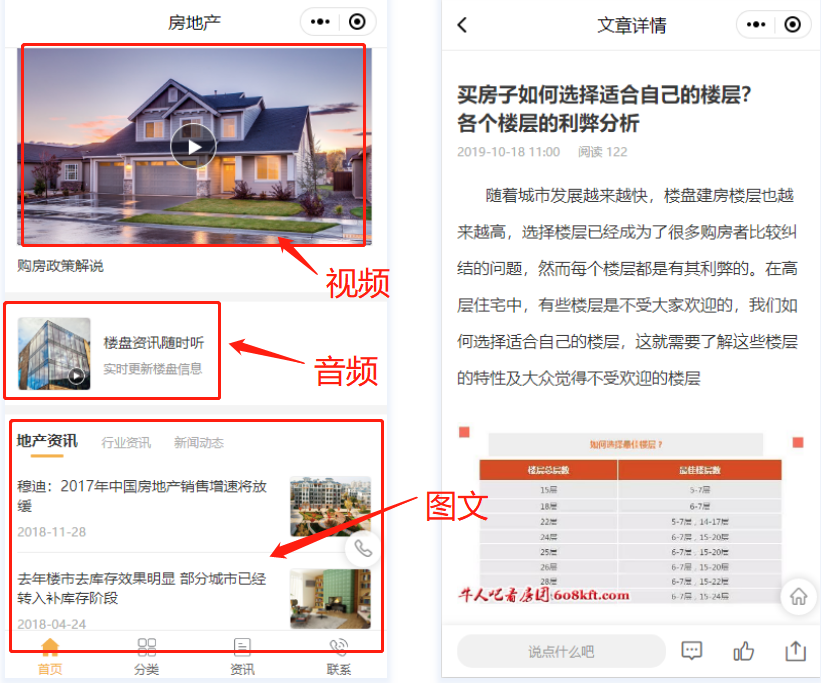 △最新房产资讯(图文、音视频)投放,提升房地产行业专业形象,提高客户信任度;