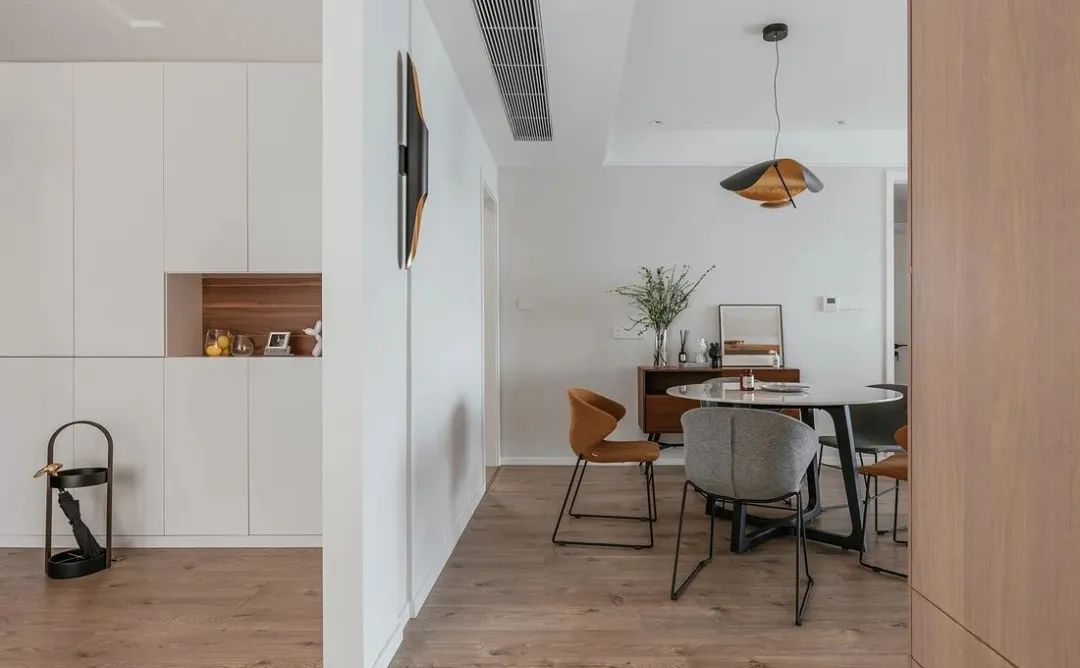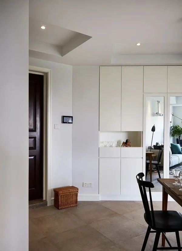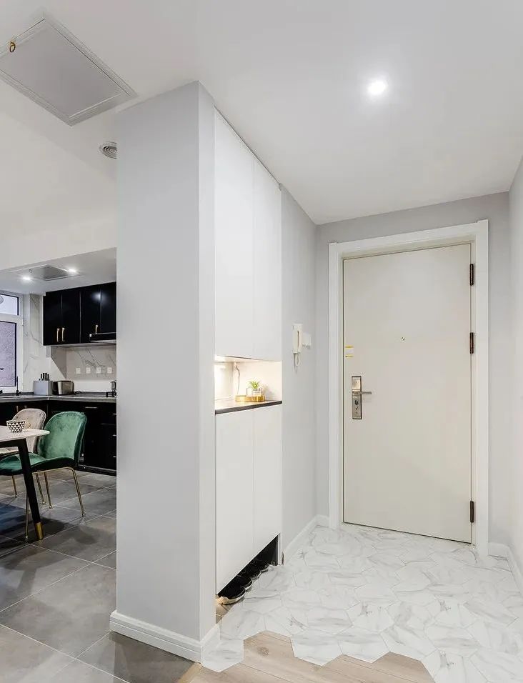 进门就是餐厅/厨房/客厅,其实【无玄关】户型还挺常见,想要设计玄关,有2种方法: