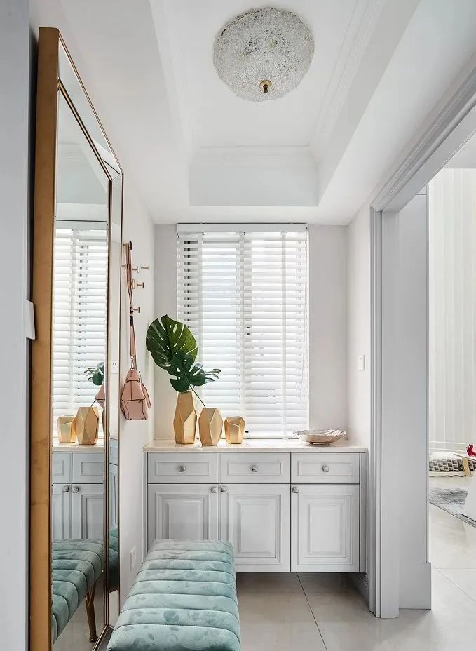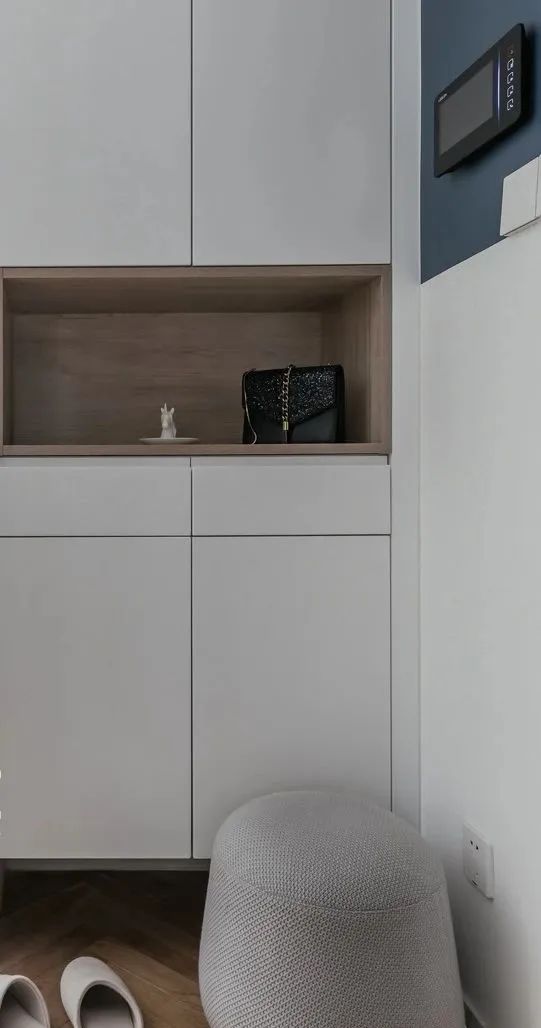 ★在距离地面1米2的地方设置小物件存放区:通常回家后,要有放置钥匙等小物件的区域。鞋柜中间部分建议留空白,在离地1m 2的腰部高度设置空白存放区,方便存放钥匙和包裹。