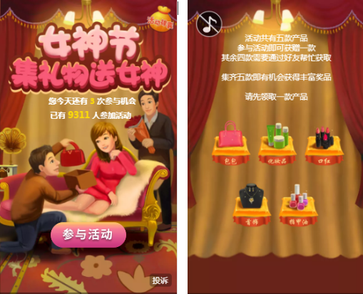 1.爱情许愿车推广活动,用“女神节.集礼物送女神”等推广模板,把其中的元素改为汽车即可