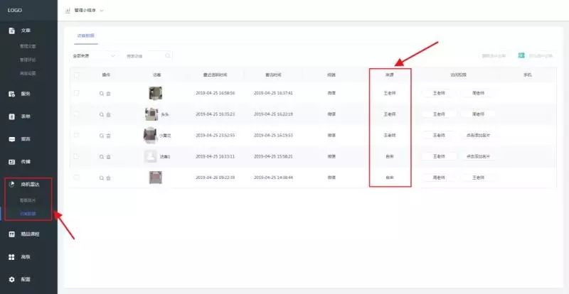 1、通过管理后台,查看所有的访客数据(数据包括访客个人信息、访客访问时的具体行为操作、访客来源、新增的访客等等)。