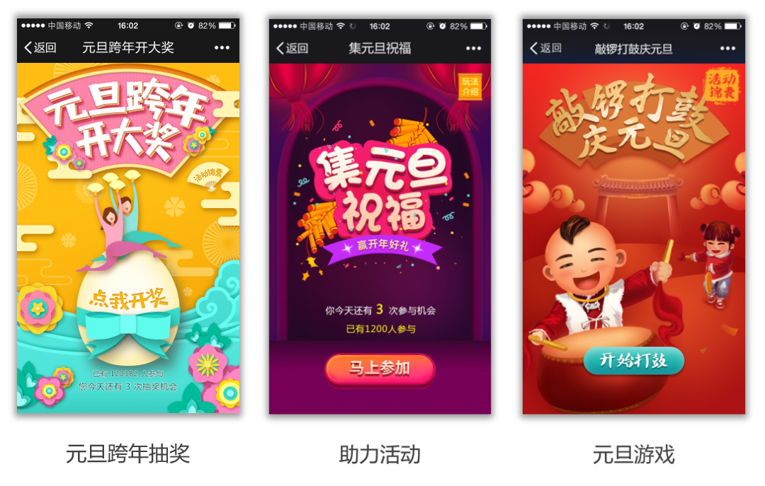 主推元旦小长假旅游套餐,结合游戏抽奖玩法,以套餐折扣券为奖品吸引用户;或结合多人拼团玩法,多组家庭参与拼团可享受低价优惠。