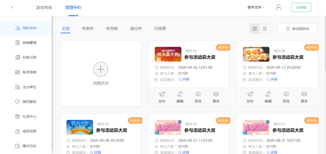 也可以在“管理中心”我的活动 处获取活动二维码以及活动链接地址预览等。