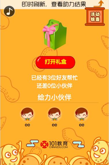 在活动类型的选择上,101网校选择了好友助力。即玩家需要邀请一定数量的好友参与游戏,才能****或增加抽奖机会。