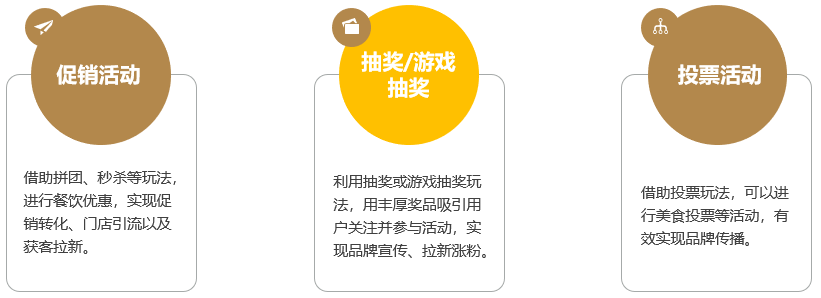 2020遭遇新冠疫情,疫情期间出现的半成品外卖以其方便快捷的优势直击痛点,成为餐饮业精细化发展的一个表现。此外,线下门店经营受阻使得一大部分餐饮商家认识到线上渠道的重要性,未来线上化发展的步伐也将加快。疫情对餐饮企业正常经营影响巨大,更多企业将重视突发情况下企业的抗风险能力。此外,疫情也使更多消费者关注食品安全及卫生问题。传统知名餐饮品牌在疫情前多以线下门店经营为主,此次疫情将启发传统知名餐饮品牌思考线上渠道的重要性,未来利用自身的品牌和口碑优势并推出外卖套餐和菜谱。餐饮行业的营销场景主要包括:新店开业、门店引流、美食宣传、食品安全宣传、招商加盟等等;而获取客户的的渠道主要有:周边宣传自有效应、地推派发传单、网络推广垂直媒体、自媒体网页广告、户外海报广告、会员活动、店庆活动等。