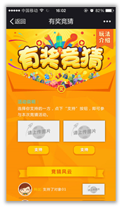 商家可发起美食或门店投票大赛,用户参与投票竞猜,猜中有奖。奖品可设置为不等额现金红包及美食奖励;丰厚奖品可吸引用户参与竞猜。抽中实物奖品者,需要填写正确信息,方便商家邮寄及用户信息留存。
