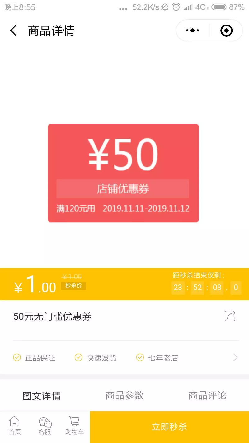对于刚起步、流量不多、没什么用户的商城来说:需要的是通过秒杀活动尽可能吸引更多人进入商城内,提升商城客流。