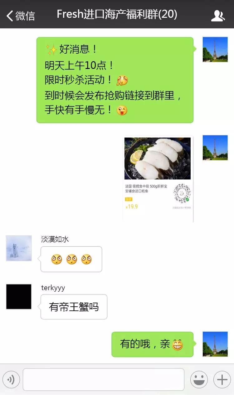 4. 秒杀活动触达用户:在会员微信群通知,或通过短信平台发送通知