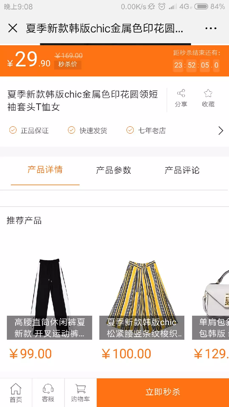 3. 页面底部**加上关联商品推荐,可以是秒杀商品的互补品。例如,服饰鞋包行业的商家选取上衣作为秒杀商品,那么页面底部可推荐与之搭配的裤子、裙子等商品。利用关联商品推荐,可以有效为商城内其他商品引流,带动其他商品转化。