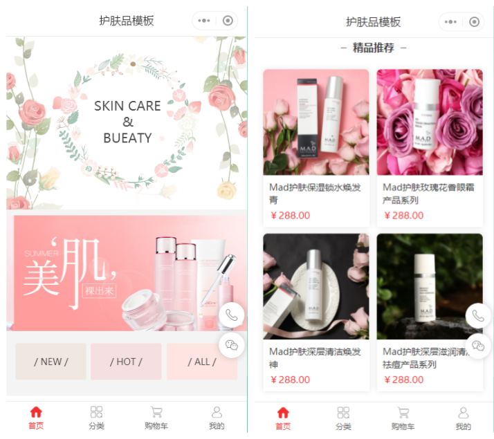 化妆品A公司利用商城工具,快速搭建起自己的线上多端(电脑端、小程序端、H5端)购物平台,不仅高档美观而且商品展示井然有序,让消费者看了就有购买欲,再也不用局限于传统的某东、某猫平台。