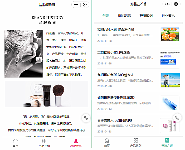 化妆品A公司利用轻应用小程序,可以发布品牌故事、护肤干货等内容,加强品牌印象,让客户好感度倍增。