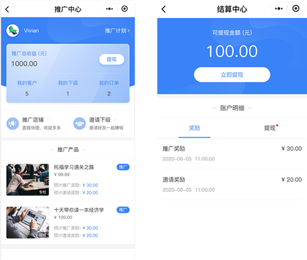c.好友报名上课,下单成功,成为新生,推广员提现