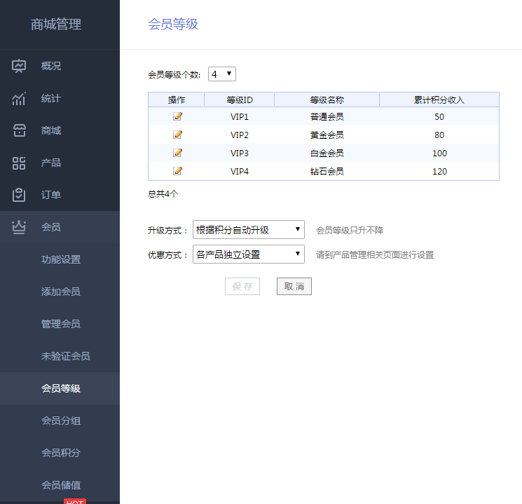 商城-会员等级打造丰富会员体系