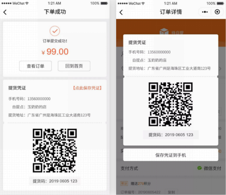 △到店自提功能:以门店为自提点,降低配送成本,并引流到店