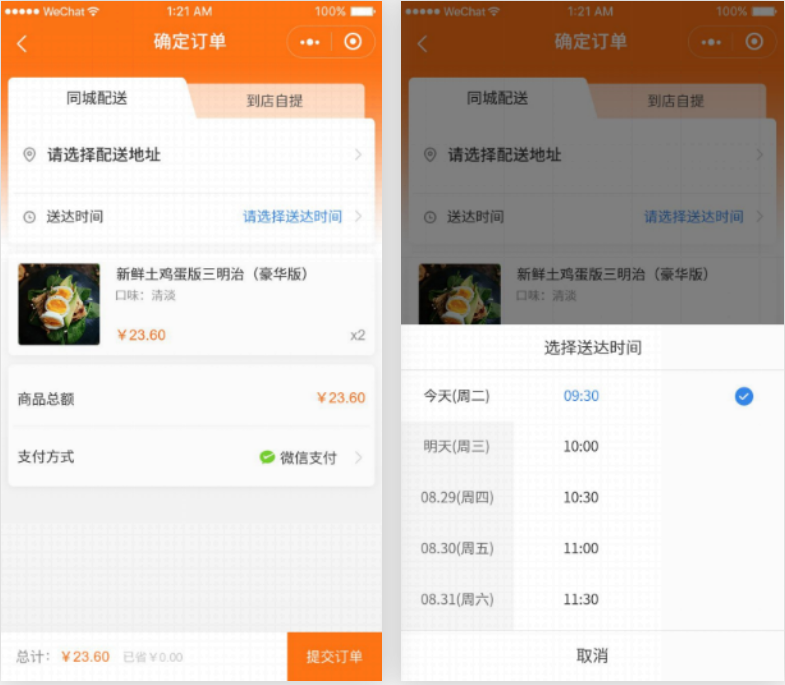 △同城配送功能:自定义配送范围和配送时段;接入第三方配送平台免去配送困扰