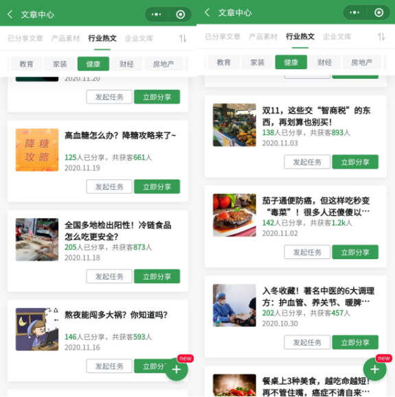 △生鲜电商商家,可以利用销售系统自带的行业软文库,选择【健康】或者【美食】专栏的文章。