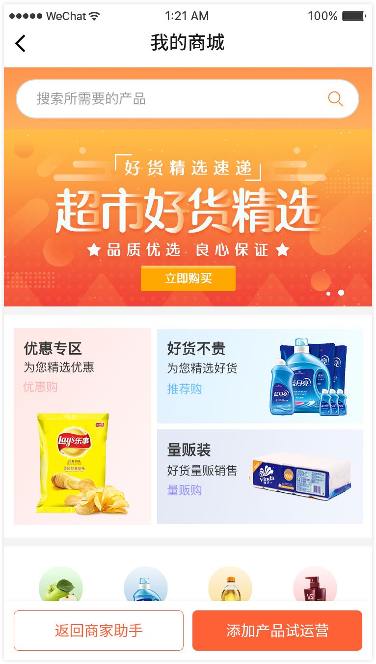 1. 新注册的商家,可直接在商家助手创建站点并预览商城,或添加产品试运营。