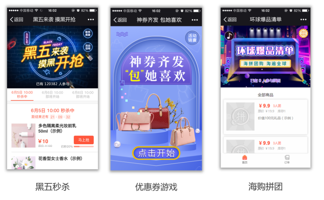 :以黑五为噱头,结合秒杀/优惠券/拼团返现/定金膨胀等玩法,进行进口美妆产品促销