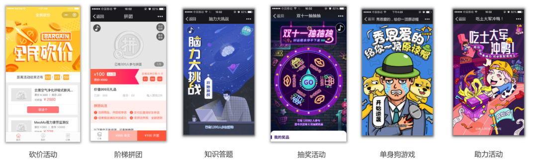 :采用定金膨胀/拼团/秒杀/砍价/满减送等活动,借势双十一进行促销活动;