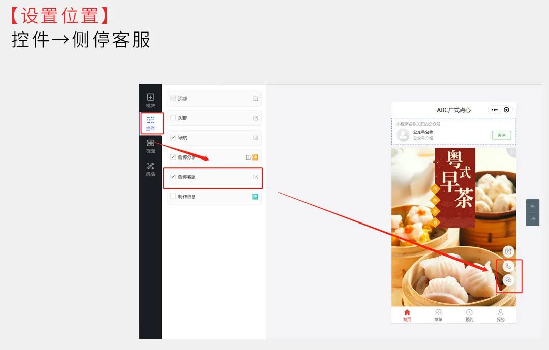 现在有一个广式点心酒楼,通过小程序对酒楼的点心进行展示,吸引用户预约点心并且到线下消费,同时想引导用户关注酒楼的公众号、参与活动等,增加用户对酒楼的粘性。