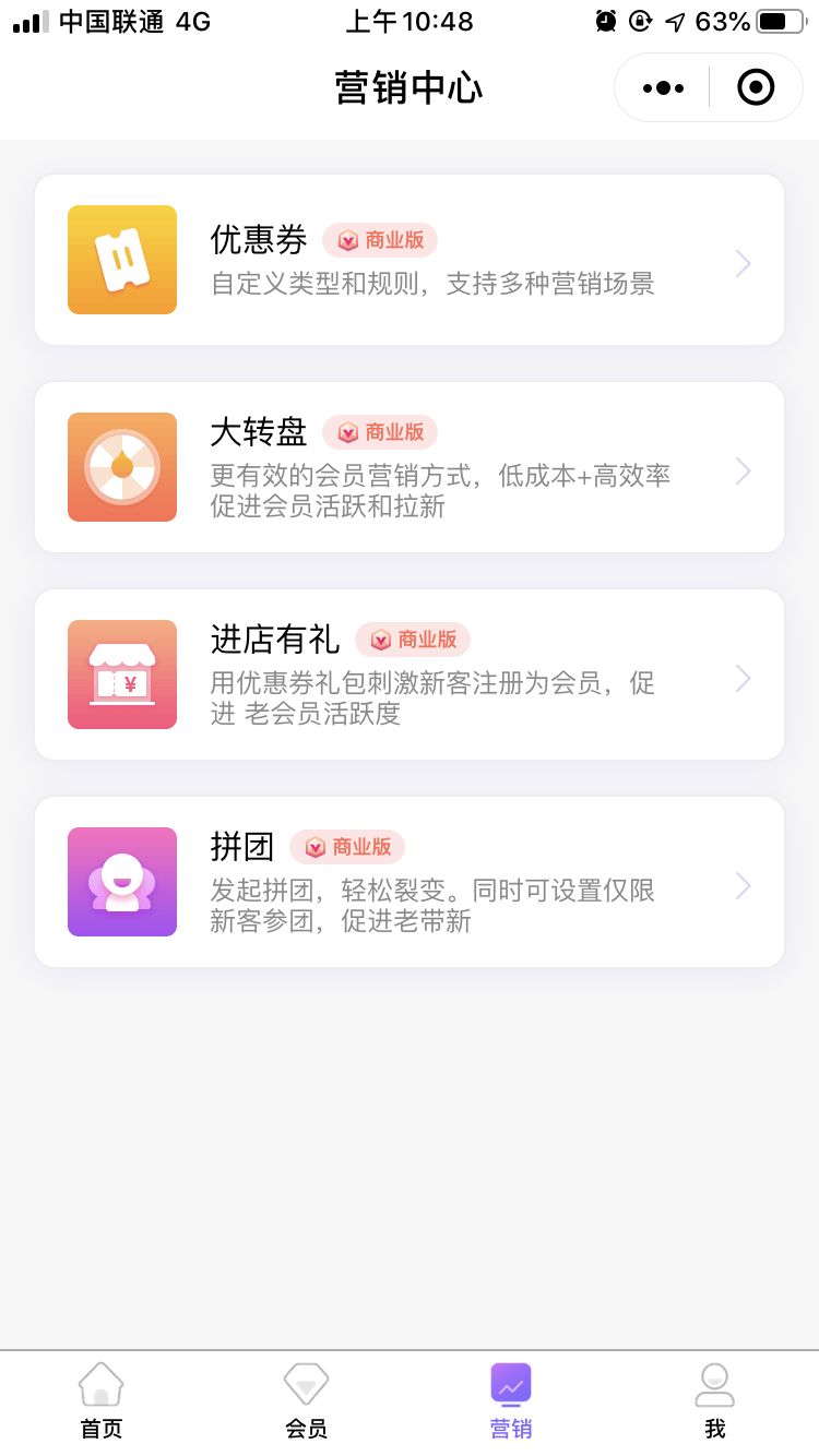 商家可以在小程序中设置“进店有礼”,各种优惠券等吸引点进来的用户注册为会员,领取优惠券并进行消费。