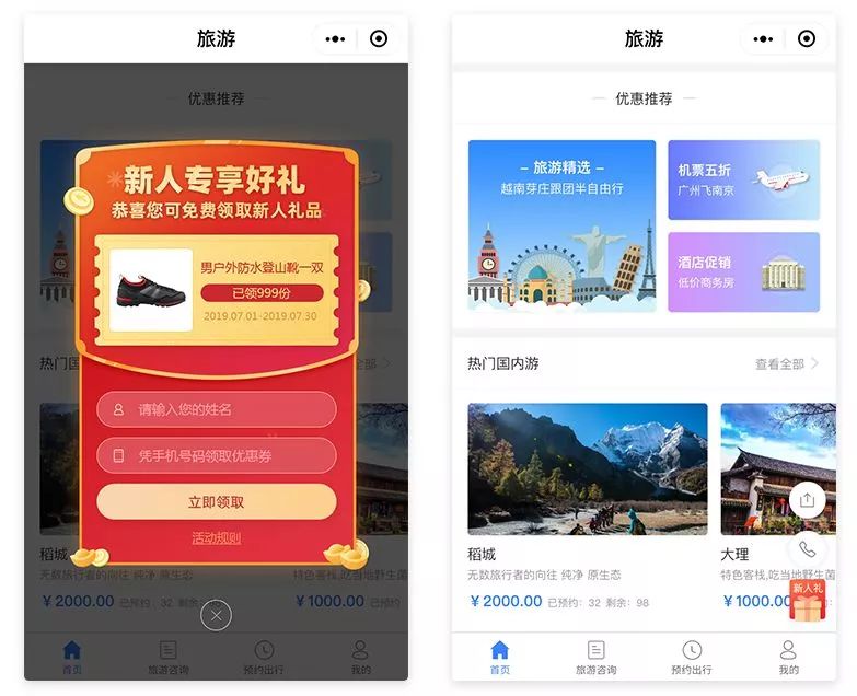 轻小程序-新人有礼,是助力企业、品牌快速获取潜在客户联系方式的一种营销活动。商家利用优惠券或者免费礼品的形式,不仅可以吸引“新人”主动留下联系方式,还能促进品牌直接与客户沟通,助力服务交易达成。