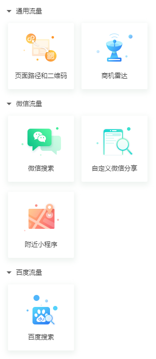 通过微信搜索、分享以及附近小程序吸收微信的超高日活流量,连推广都免了;同时支持授权百度小程序,将百度的搜索流量收入囊中,实现双端口对接。
