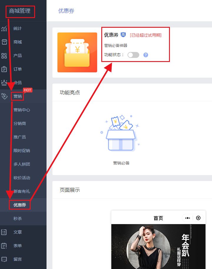 看完了知识,当然就要学以致用啦。我们的商城可以在设置好优惠券的前提下,搭配叠加拼团、砍价、 限时促销或秒杀等多个营销利器,引爆活动。